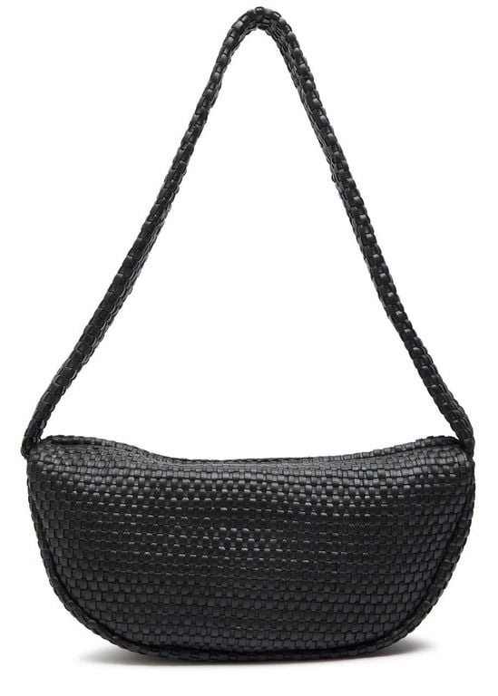 Latice Weave Crescent Leather Shoulder Bag - Black - St. Agni Shoulder Bags