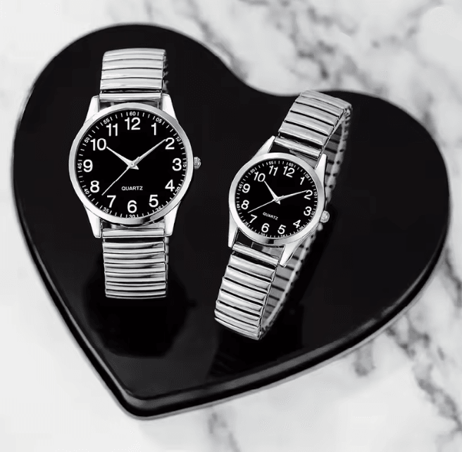 Couple Quartz Watch Set Black Arabic Dial Elastic Band lovers