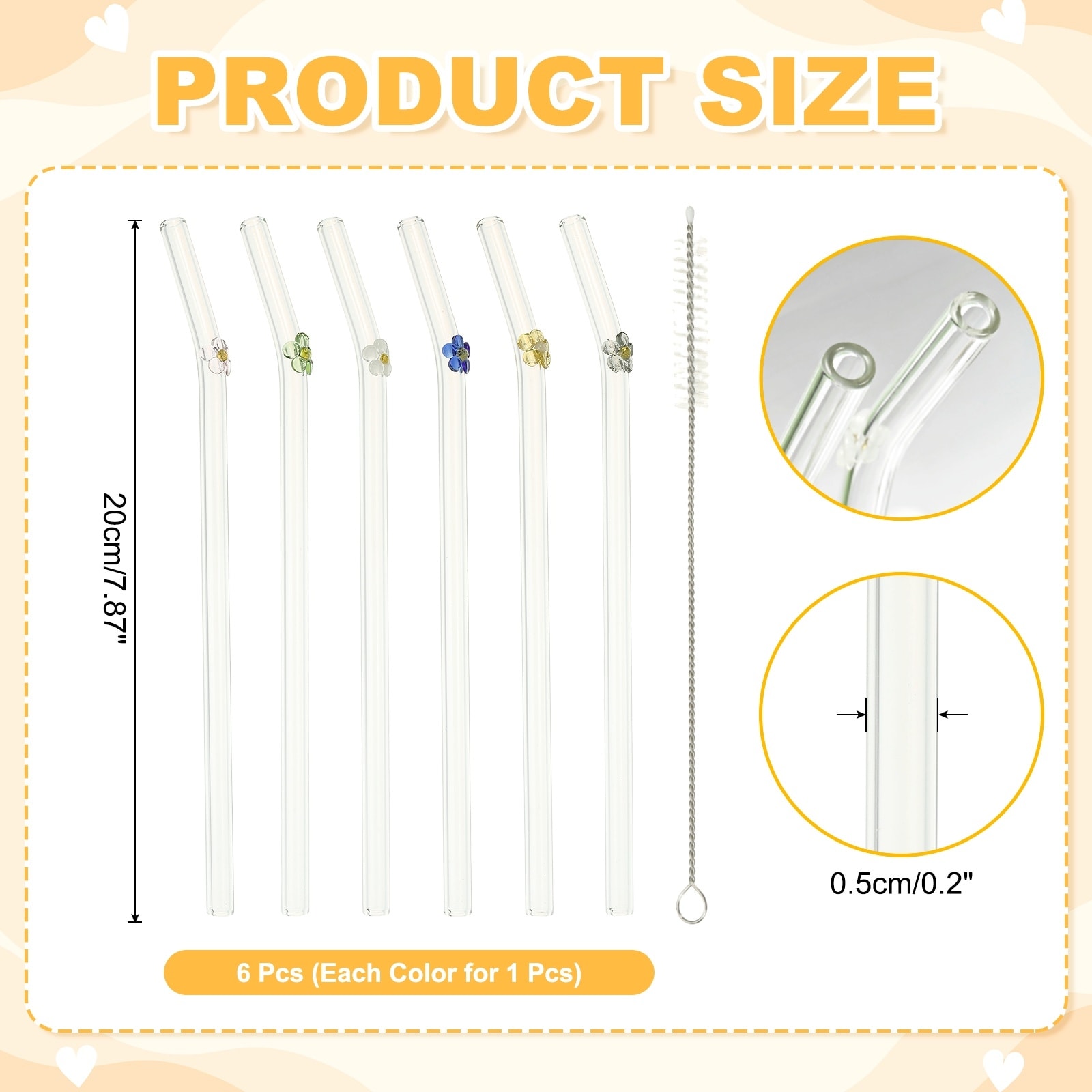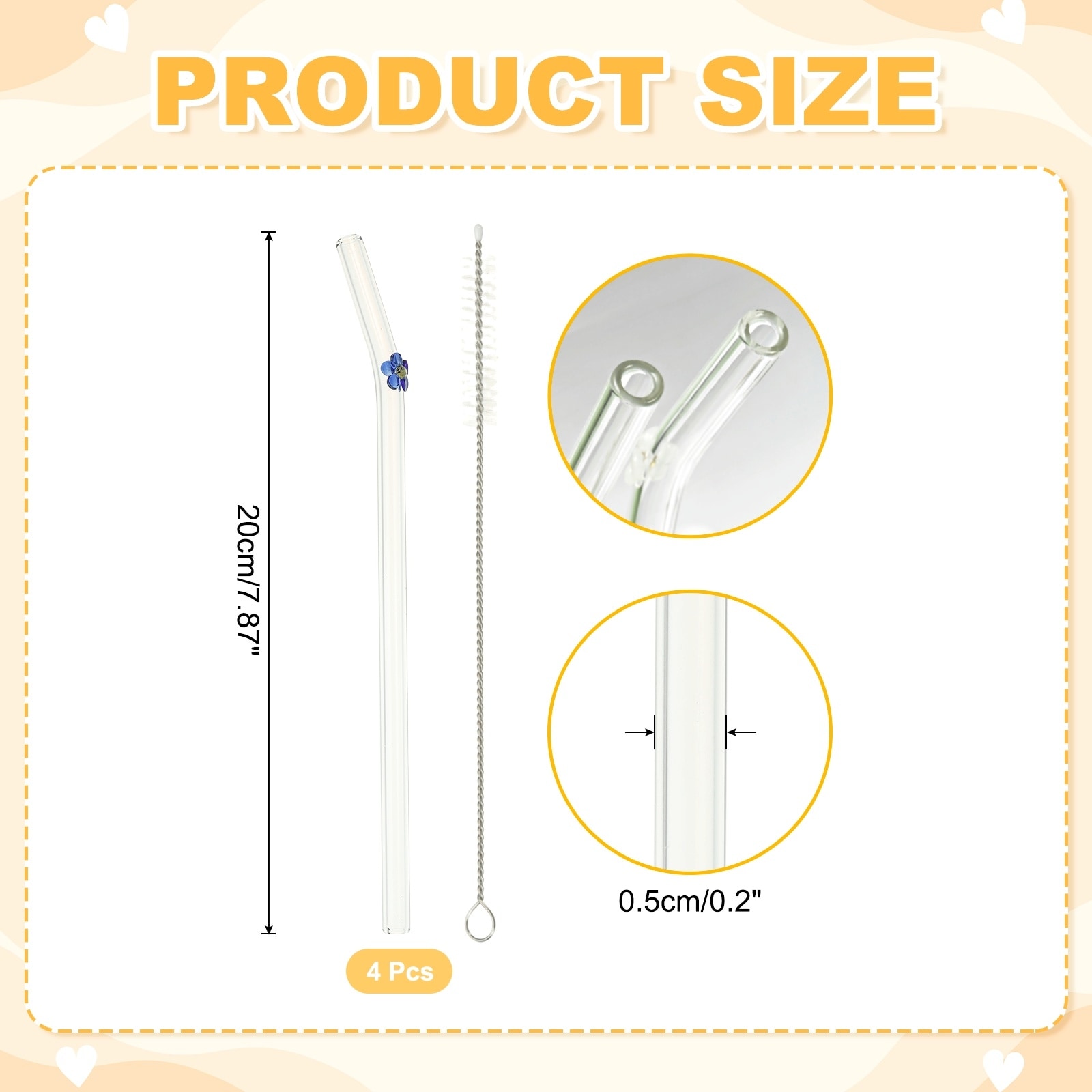Reusable Glass Straws, Flower Glass Straw Shatter Resistant Cute Straws for Whiskey Coffee Juice Soda Drinks Tea