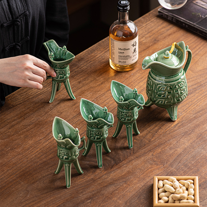 High End Retro Ceramic Wine Set, , Home Creative Gift Box, Light Luxury Style golden 60ml 600ml