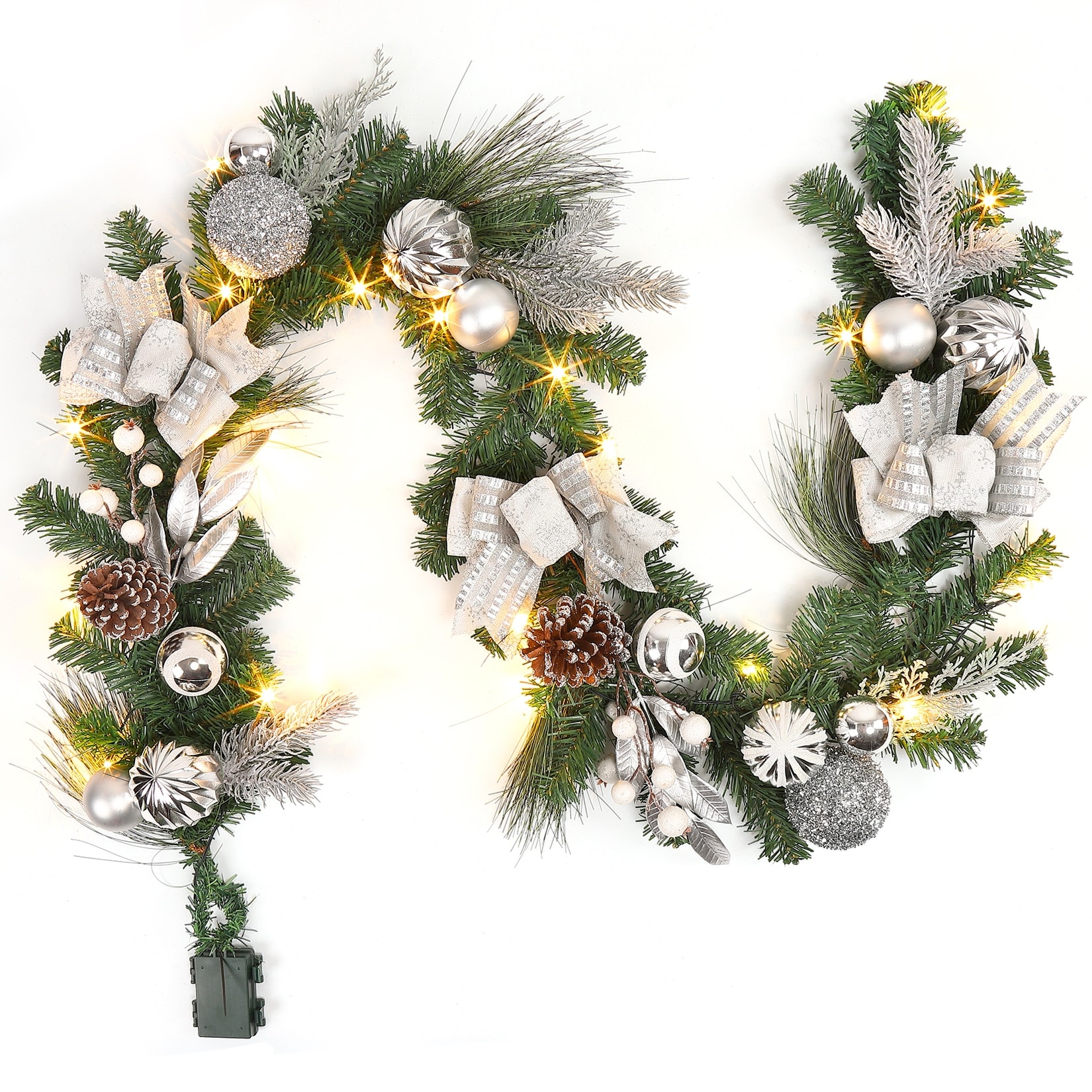 6 Ft Pre Lit Christmas Garland with 20 LED Lights & Glitter Bows