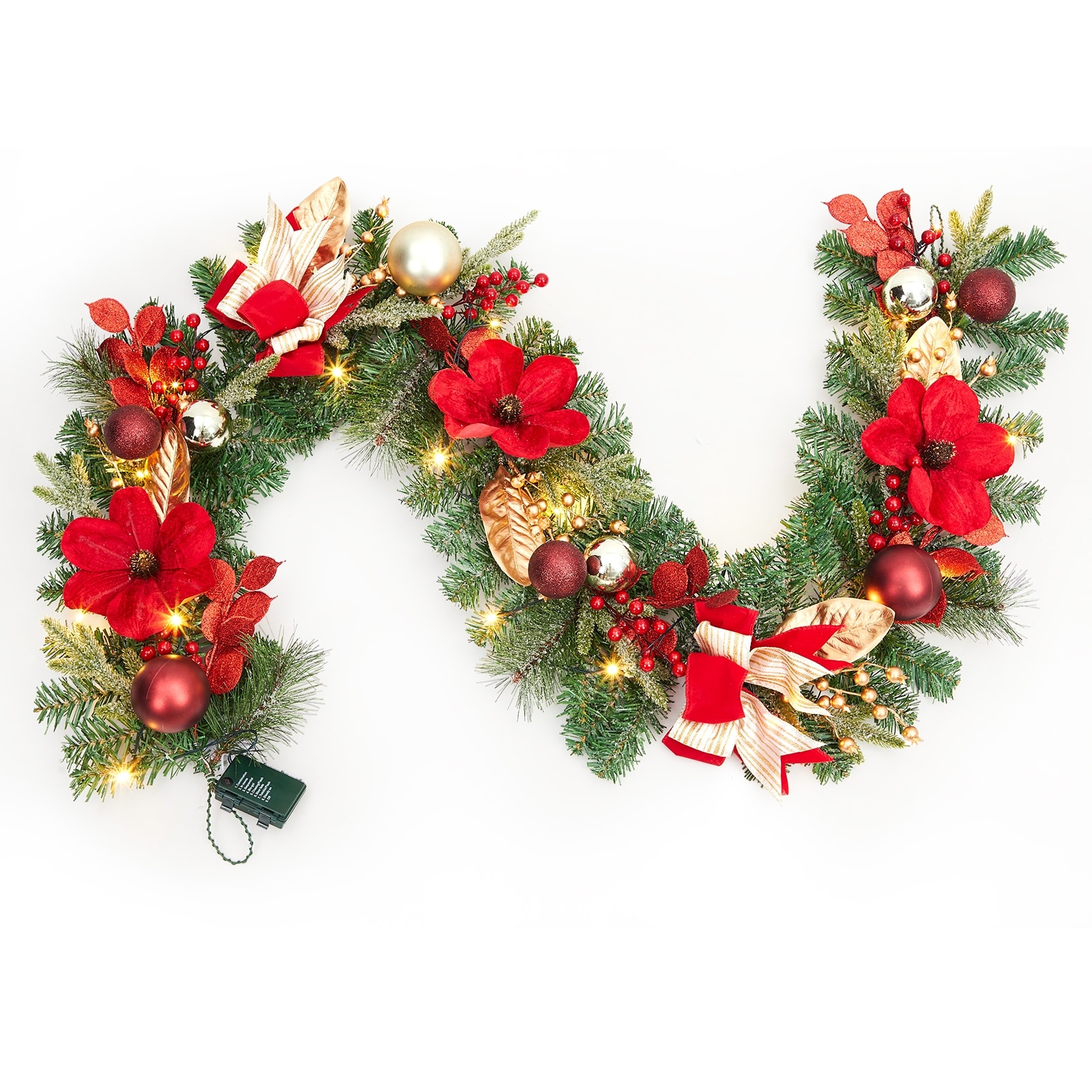 24 Inch Christmas Wreath, with Gold Ball Ornaments & Flower Leaves