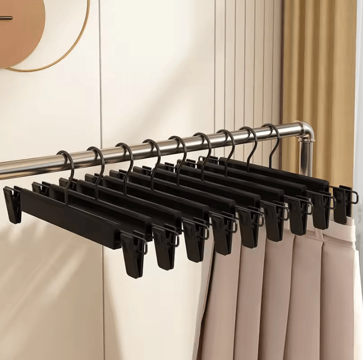 10pcs Frosted Plastic Trouser Rack With Strong Seamless Clip Hangers For Drying Clothes black