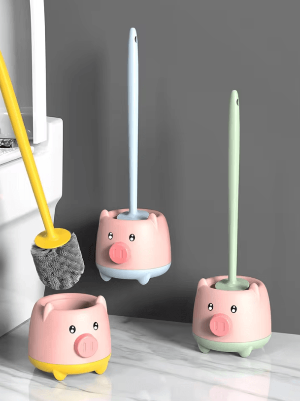 Cute Piglet Toilet Brush Set Wall Hanging No Dead Corner Cleaning Magic green