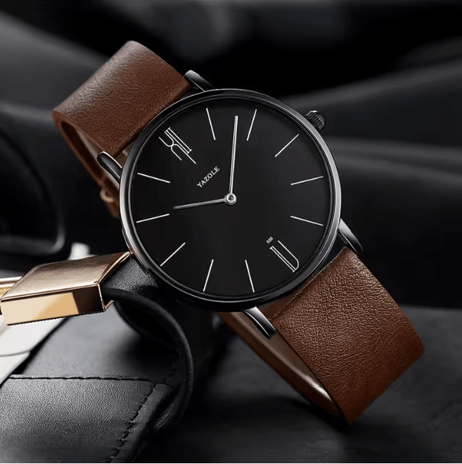 Mens Military Style Quartz Watch Genuine Leather Strap a