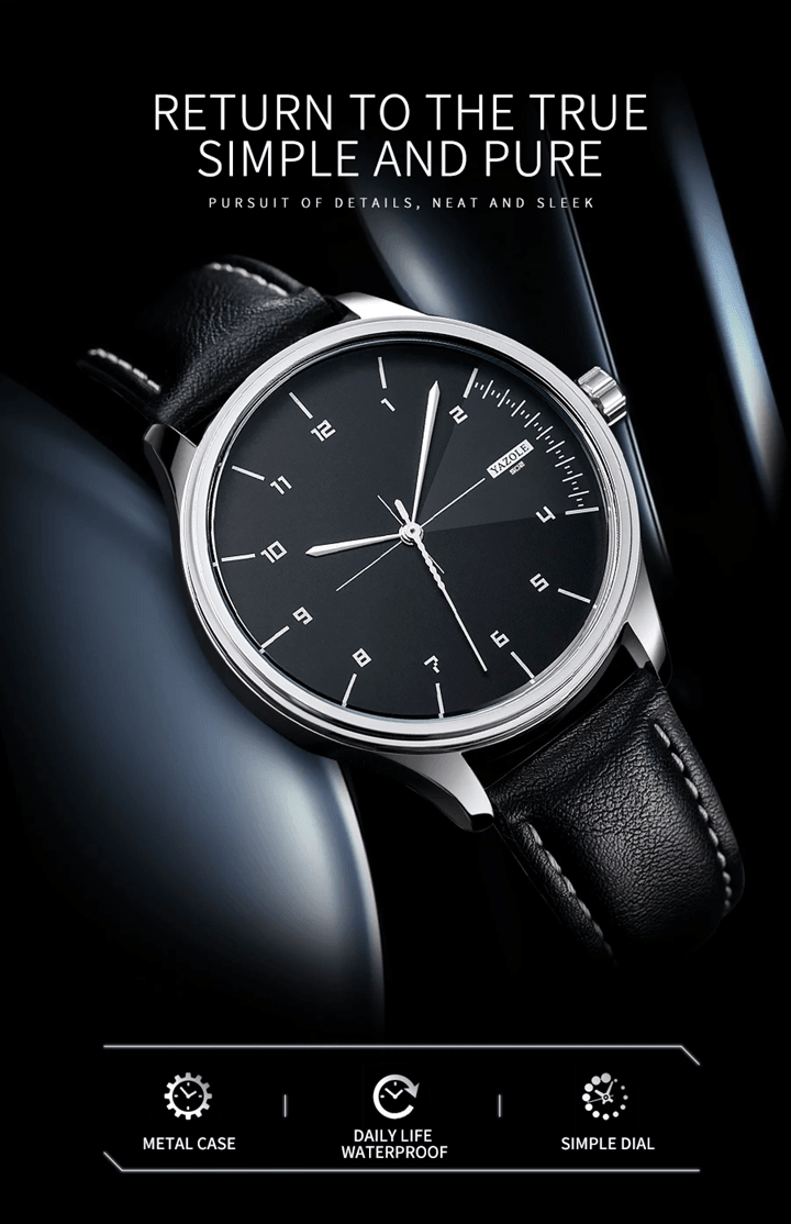 YAZOLE Mens Leather Quartz Watch Casual Sport Style black White