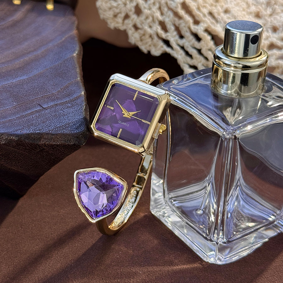 High End Quartz Wristwatch, New Ladies Open Bracelet Watch, Assorted Shaped Diamond Color Gemstone Timepiece green