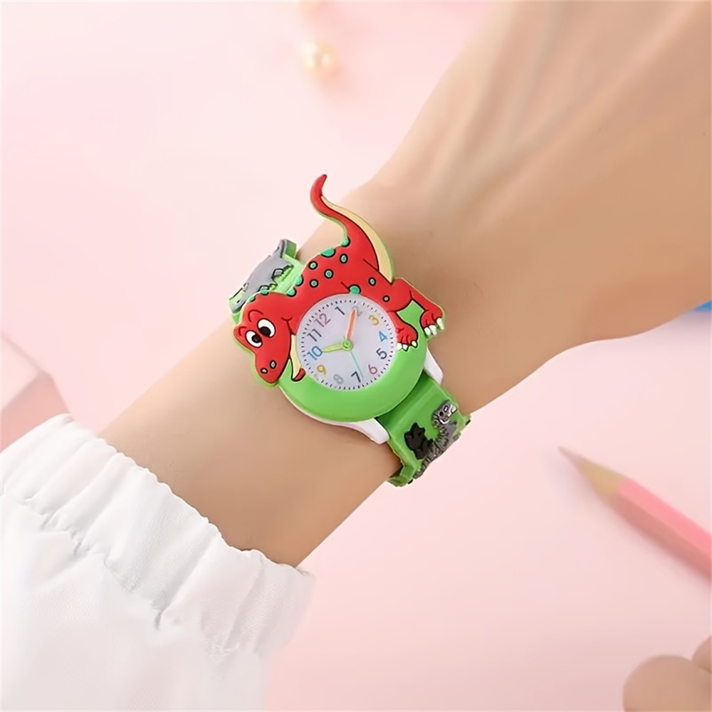 3D Dinosaur Kids Cartoon Silicone Quartz Watch For Students blue