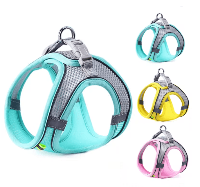 Summer Cat & Dog Harness Lead Leash, Adjustable Vest, Breathable Polyester Mesh With Reflective Strips For Safety blue l